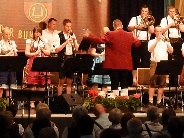 Die musikalische Leitung liegt in den Händen von Stabsfeldwebel Dirk Wachtler. Nach dem Musikstudium war er zunächst sechs Jahre in einem Heeresmusikkorps eingesetzt, bevor er 2002 als Ausbilder für Tenorhorn, Posaune und Musiktheorie nach Hilden ins Ausbildungsmusikkorps wechselte. Musikalische Erfahrung auf dem Gebiet der böhmischen Blasmusik konnte er in verschiedenen Orchestern, vor allem unter den Dirigenten Michael Klostermann, Robert Payer und Ernst Mosch, sammeln. Die jungen Musiker, allesamt Studenten der Düsseldorfer Musikhochschule, werden die Besucher mit ihrer Spielfreude begeistern. Sie treten diesmal nicht in Uniform, sondern stilecht in Dirndl und Lederhose auf. Für Speis und Trank sorgt derweil das Team der Burgstube. Passend zur Musik gibt es deftige Speisen sowie ein reichhaltiges Angebot an warmen und kalten Getränken.
