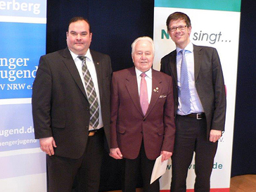 Neben seinem Einsatz als Sänger engagierte er sich auch über Jahrzehnte im Vorstand, lange Jahre als Notenwart des Chores. Nun ehrte ihn der Sängerkreis Niederberg im Beisein von Landrat Hendele im Rahmen einer festlich gestalteten Feierstunde im Pfarrzentrum „Glocke“ von „Maria, Königin des Friedens“ in Velbert-Neviges. Die Vorsitzende des Sängerkreises Niederberg, Silvia Tyra, dankte den Jubilaren für ihren verdienstvollen Einsatz um die Musik im Sängerkreis.